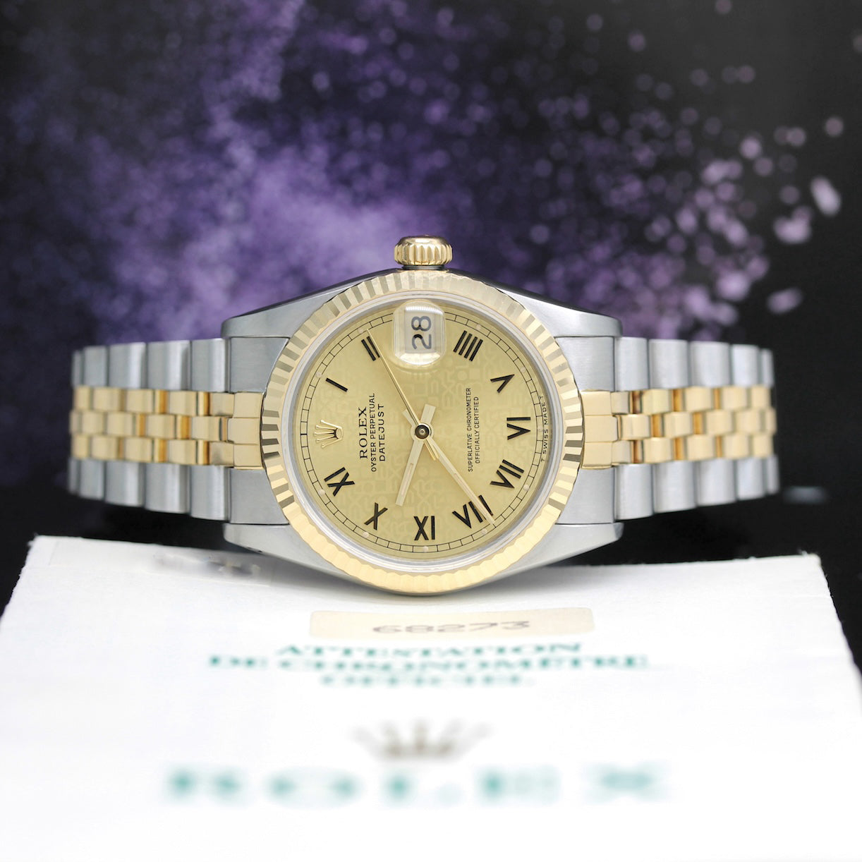 Lieferumfang Rolex Datejust Medium Automatik Stahl/Gold (Uhr) Referenz 68273 - Rolex Papiee ( LC 400 ) - Rolex Box