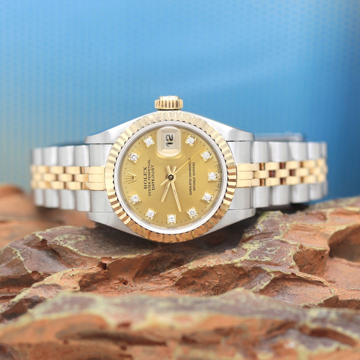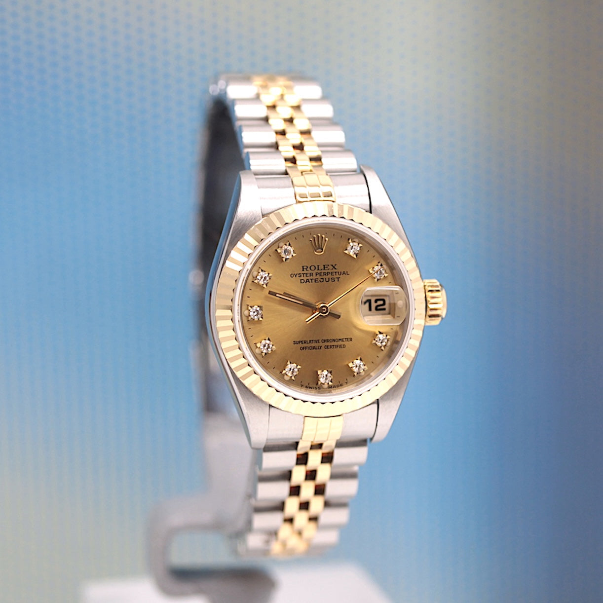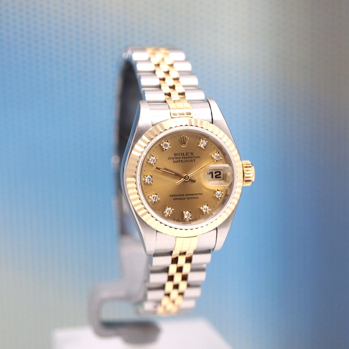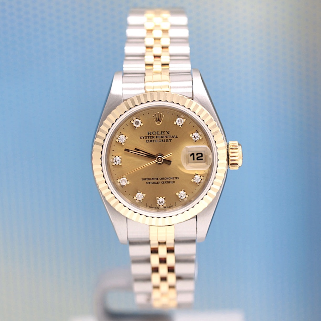 Die Uhr befindet sich in einem dem Alter entsprechend guten Zustand. Sie ist mit einem Automatikwerk ausgestattet. Das Werk wurde im März 2026 geölt und gereinigt. Eine Bereicherung für jeden Uhrensammler und Liebhaber. Das Jubileeband ist in Stahl/Gold und gebraucht, aber in einem noch guten Zustand ( Jubileeband mit 15.5 cm Länge (ohne Uhr gemessen) ). Sie bieten hier auf eine Wunderschöne und klassische Armbanduhr der Spitzenklasse mit Wiedererkennungswert. Saphirglas. Das Zifferblatt ist champagner - farbig und 10 Diamanten besetzt ( hierbei handelt es sich um einen Rolex Besatz ). Die Lünette ist aus 18KT Gelbgold. Die Datejust Uhr ist 32 Jahre alt und wird in einem gebrauchten Zustand verkauft.