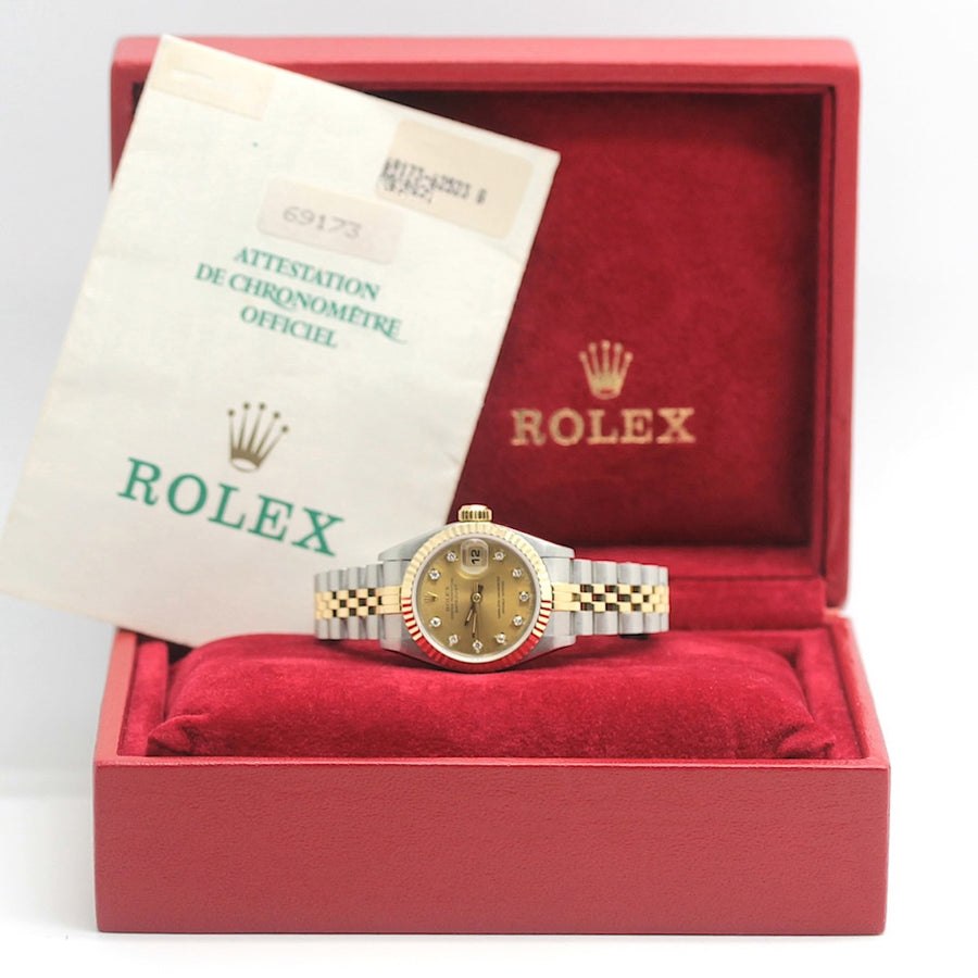| Lieferumfang | Rolex Lady Datejust Automatik Stahl/Gold (Uhr) Referenz 69173 - Rolex Papiere ( LC 400 )- Rolex Box |
