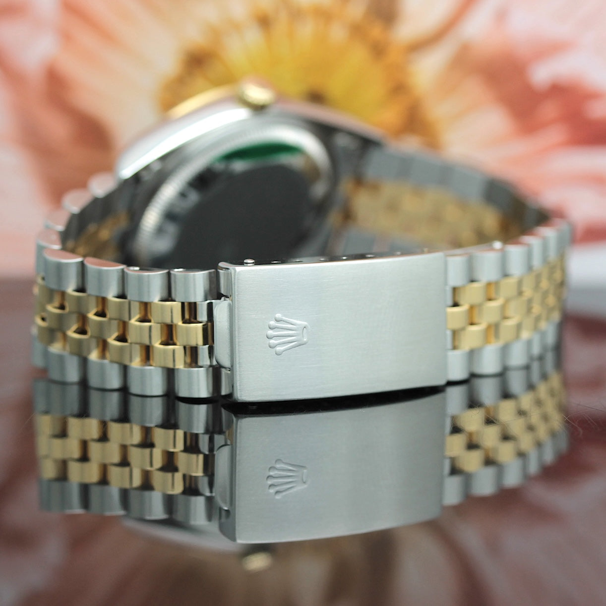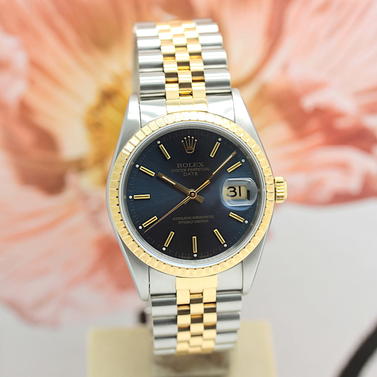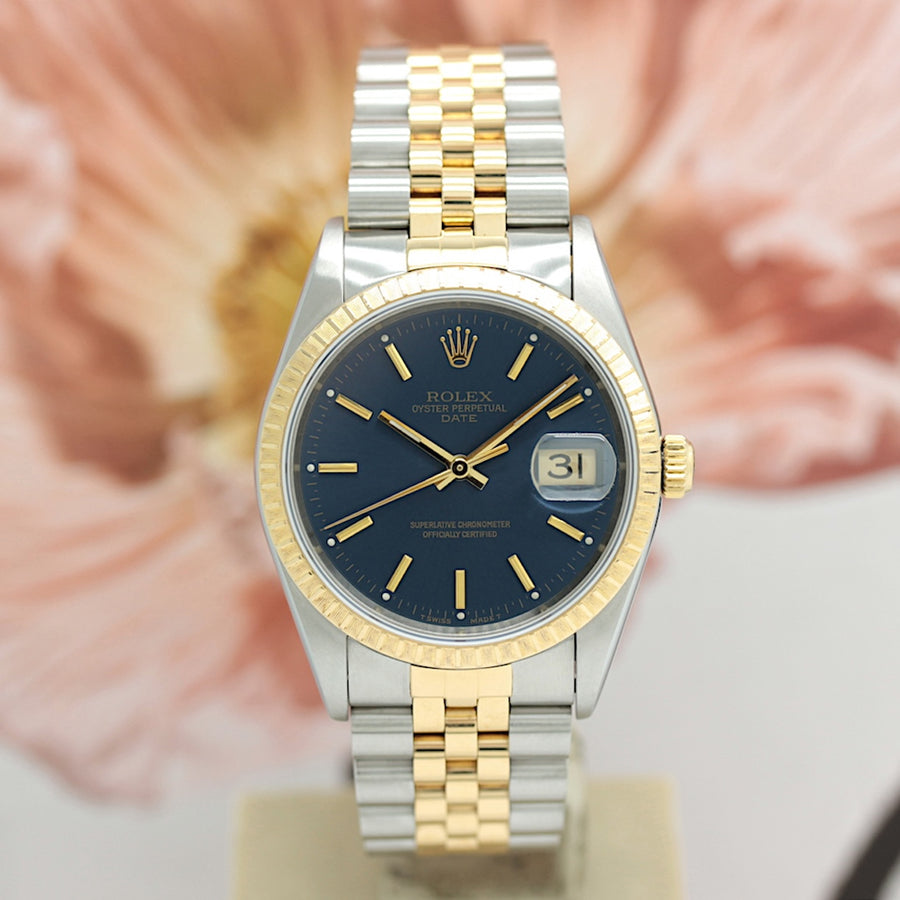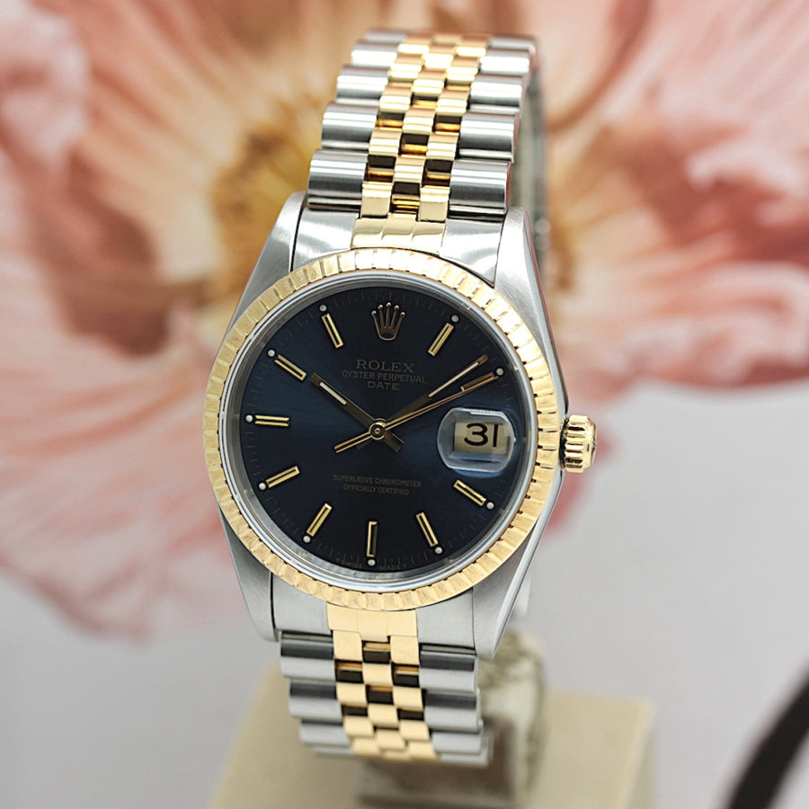 Die Uhr befindet sich in einem dem Alter entsprechend guten Zustand. Sie ist mit einem Automatikwerk ausgestattet. Eine Bereicherung für jeden Uhrensammler und Liebhaber. Alle Funktionen wurden vom Uhrmachermeister überprüft und für einwandfrei befunden. Das Werk wurde im Dezember 2025 geölt und gereinigt. Das Jubileeband ist in Stahl/Gold und gebraucht, aber in einem noch sehr guten Zustand. Sie bieten hier auf eine Wunderschöne und klassische Armbanduhr der Spitzenklasse mit Wiedererkennungswert. Saphirglas . Das Zifferblatt ist blau - farbig. Die Lünette ist aus 18KT Gold. Die Date Uhr ist ca 28 Jahre alt, und wird in einem gebrauchten Zustand verkauft.