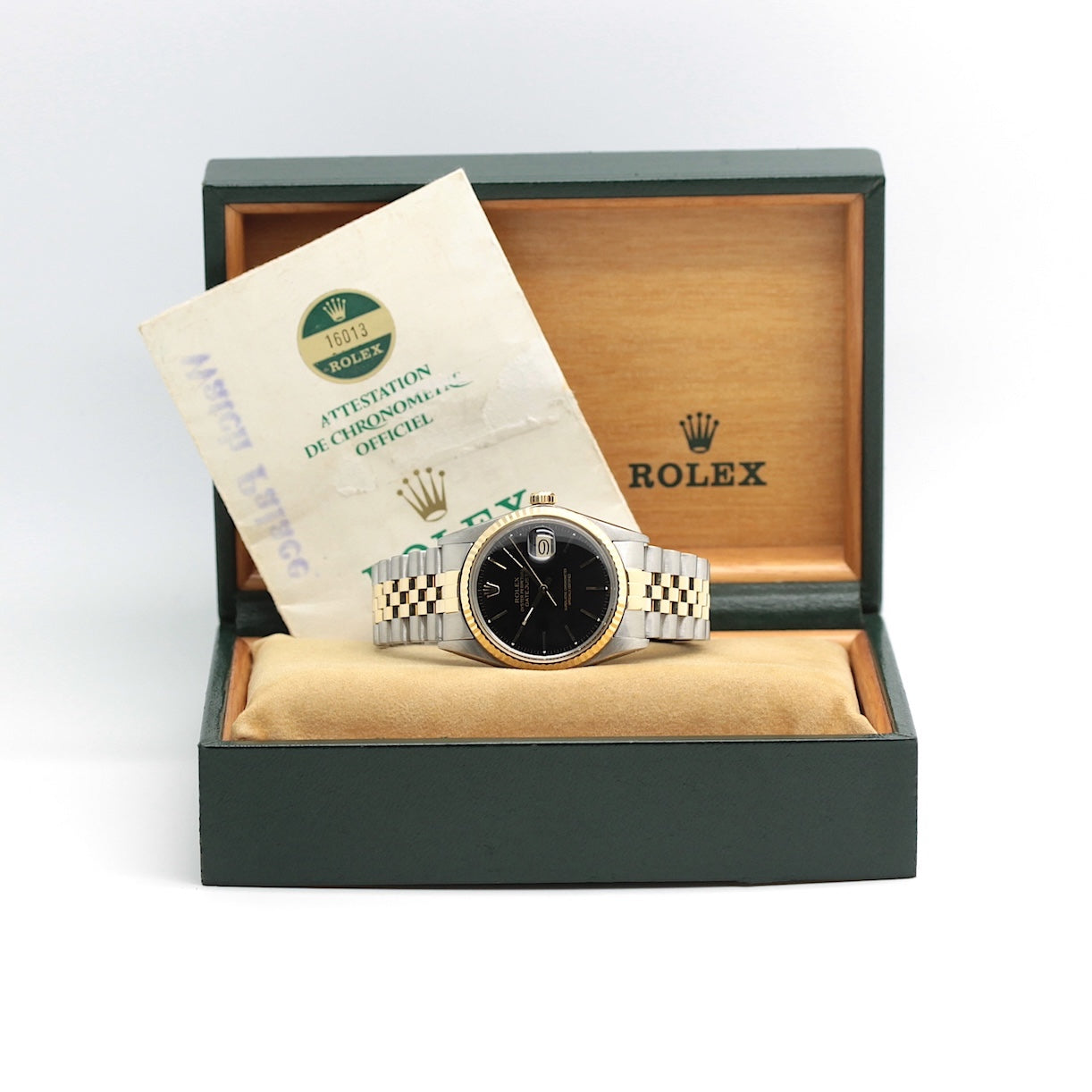 Lieferumfang Rolex Datejust Automatik Stahl/Gold (Uhr) Referenz 16013 - Rolex Papiere ( LC 430 ) - Rolex Box