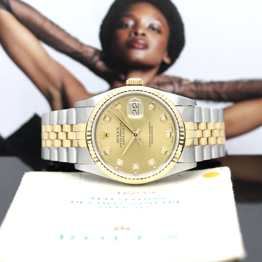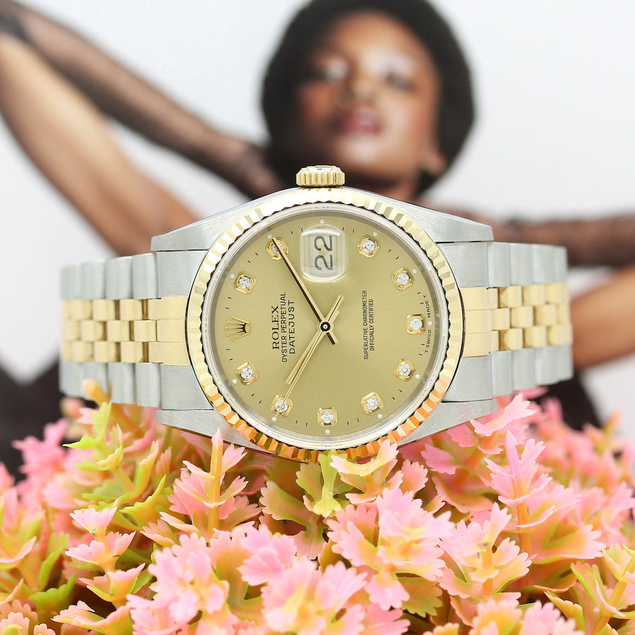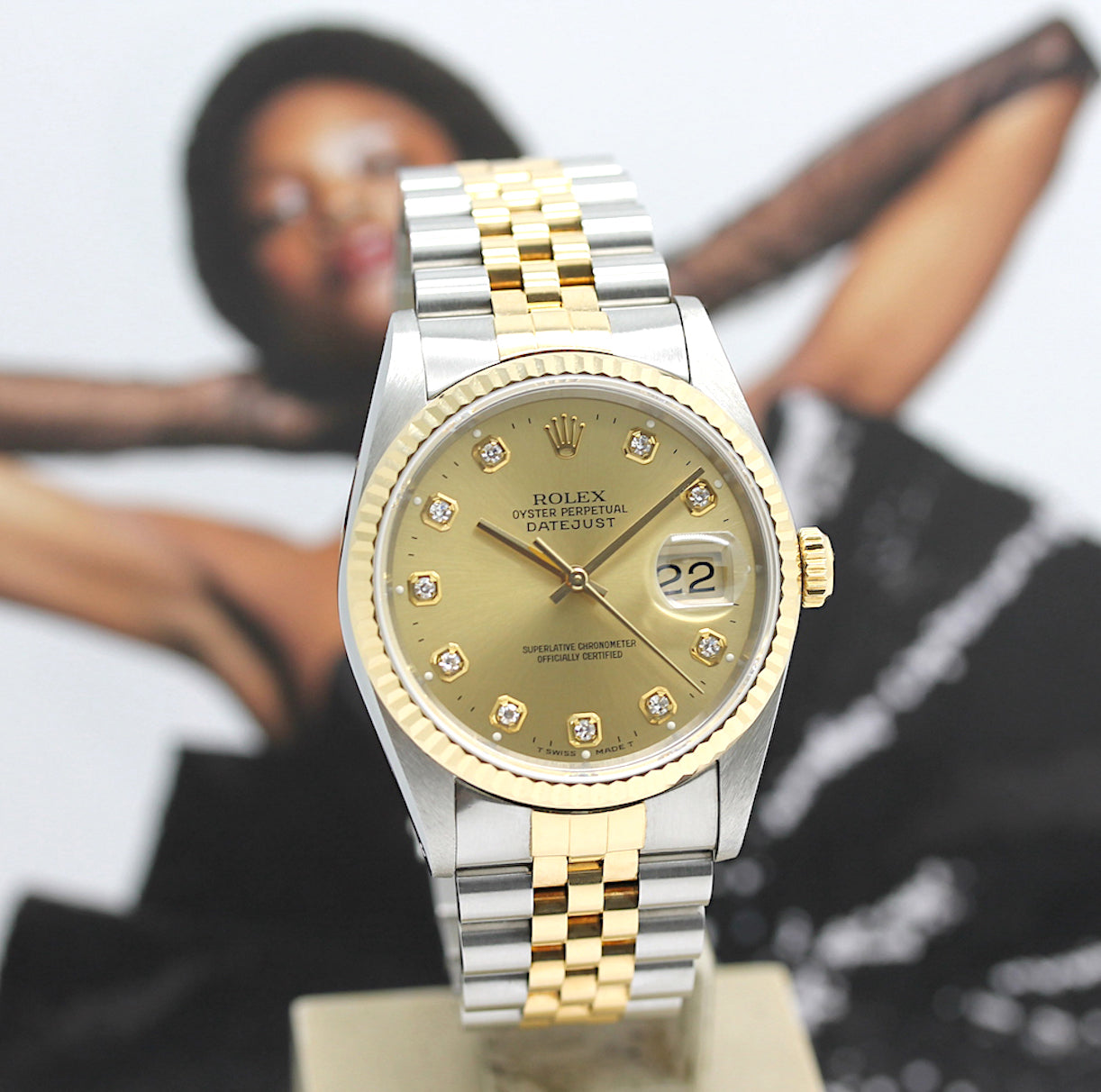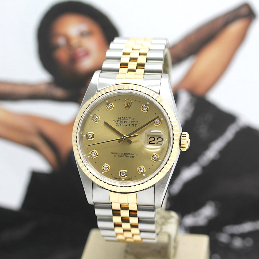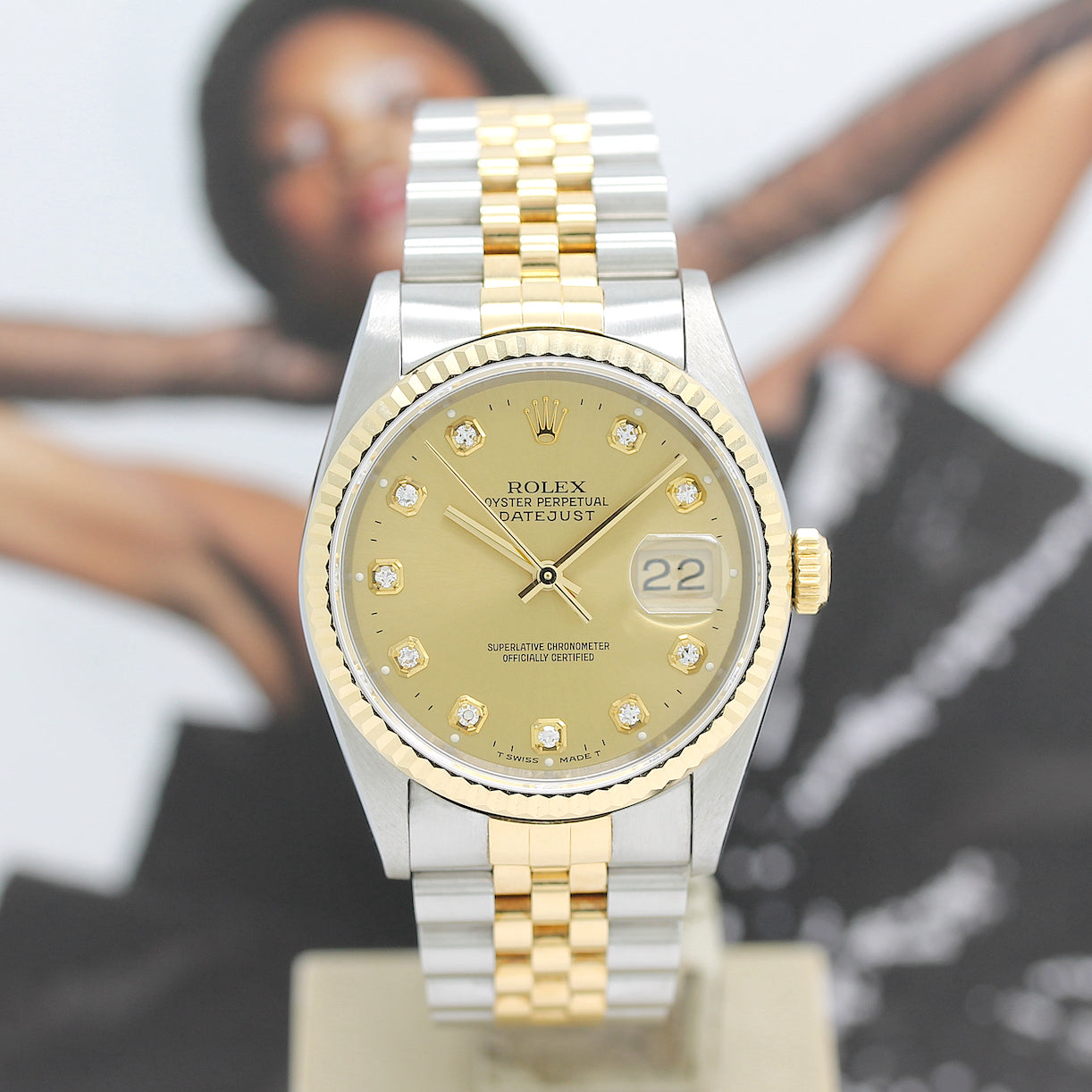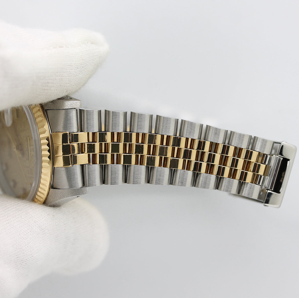 Die Uhr befindet sich in einem dem Alter entsprechend guten Zustand. Sie ist mit einem Automatikwerk ausgestattet. Das Werk wurde im September 2025 geölt und gereinigt. Eine Bereicherung für jeden Uhrensammler und Liebhaber. Das Jubileeband ist in Stahl/Gold und gebraucht, aber in einem noch guten Zustand ( Jubileeband mit 16 cm Länge (ohne Uhr gemessen). Sie bieten hier auf eine Wunderschöne und klassische Armbanduhr der Spitzenklasse mit Wiedererkennungswert. Saphirglas.Das Zifferblatt ist champagner - farbig und 10 Diamanten besetzt ( hierbei handelt es sich um einen Rolex Besatz ). Die Lünette ist aus 18KT Gold. Die Datejust Uhr ist 33 Jahre alt und wird in einem gebrauchten Zustand verkauft.