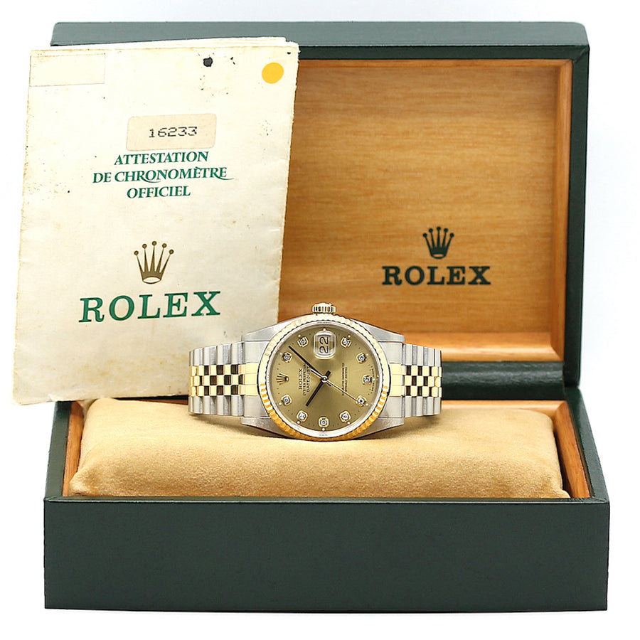 | Lieferumfang | Rolex Datejust Automatik Stahl/Gold (Uhr) Referenz 16233 - Rolex Papiere ( LC 400 ) - Rolex Box |