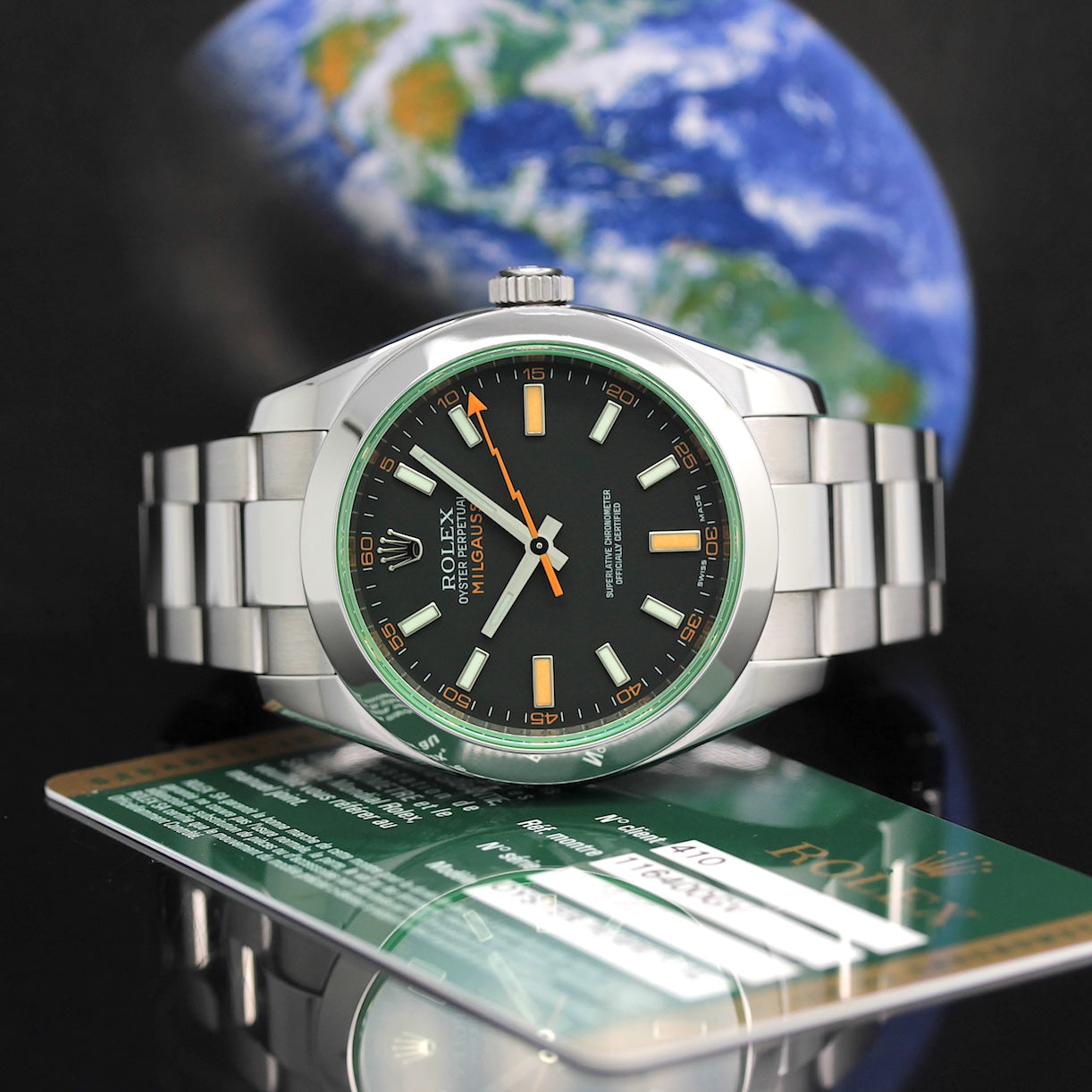 Lieferumfang | Rolex Milgauss Automatik Stahl (Uhr) Referenz 116400GV - Rolex Papiere - ( LC 410 ) - Rolex Box |